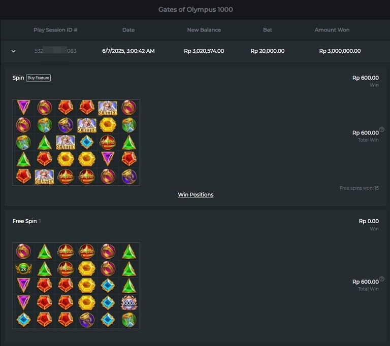 Bukti pelunasan testimoni kemenangan maxwin member dari permainan Gates Of Olympus 1000 pada hari ini tanggal 7 juni 2025