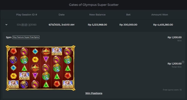 Selamat Kepada Member dengan User id : sxxxxx555, kemenangan kali ini kembali dari permainan Gates Of Olympus Super Scatter akan tetapi kali ini berasal dari terkoneksinya perkalian x500 dalam buy feature super free spin, pada bet Rp. 400 yang berarti feature super freespin pada Rp. 200.000. Dalam Super Freespin tersebut memiliki fitur baru dengan minimal perkalian yang akan keluar hanya dari x10. Ada kekurangan dan kelebihan itu juga yang terlihat jelas pada fitur ini. Dengan harga buyspin lebih mahal akan memberikan trigger perkalian yang lebih besar daripada freespin biasa, akan tetapi akan mendapatkan peluang jackpot yang lebih besar pada permainan.